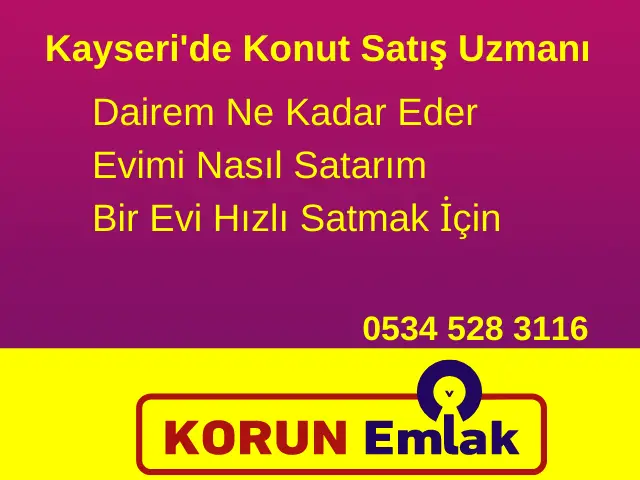 Firmamızı Kayseri'de dairem ne kadar eder, dairem kaç para eder, dairemi satmak istiyorum, dairemin değeri, dairemin fiyatı nedir, daire değer hesaplama, satılık ev değeri hesaplama, eviniz değerinde alınır, evimi acil satıyorum, evimi nasıl satarım, evimi nasıl hızlı satarım gibi Kayseri emlak konuları için arayabilirsiniz.