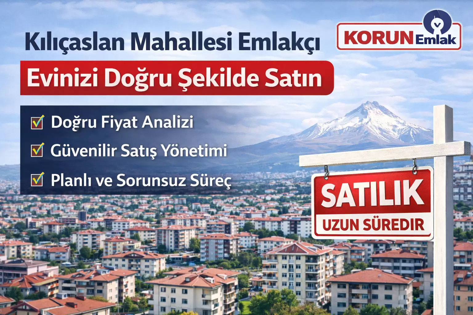 Korun Emlak olarak Kılıçaslan Mahallesi’nde satış sürecine başlamadan önce detaylı bir değerlendirme yaparız. Yaklaşımımız: