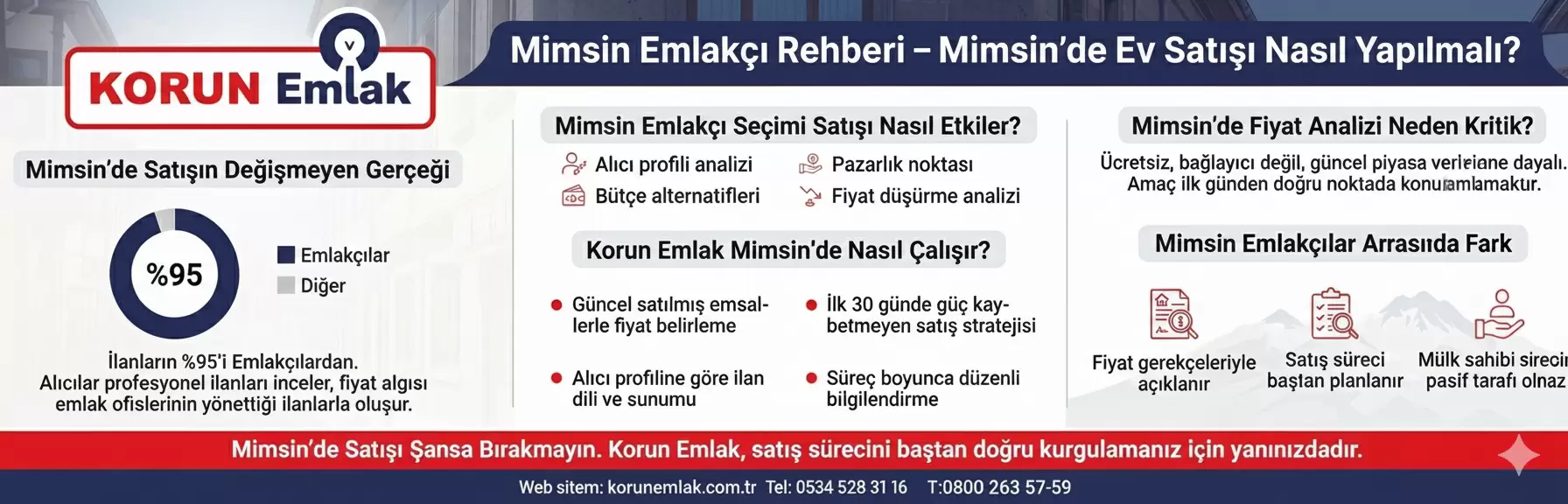 Mimsin’de başarılı satışlar, süreci şansa bırakmayan emlakçılarla yapılır. Korun Emlak’ta: